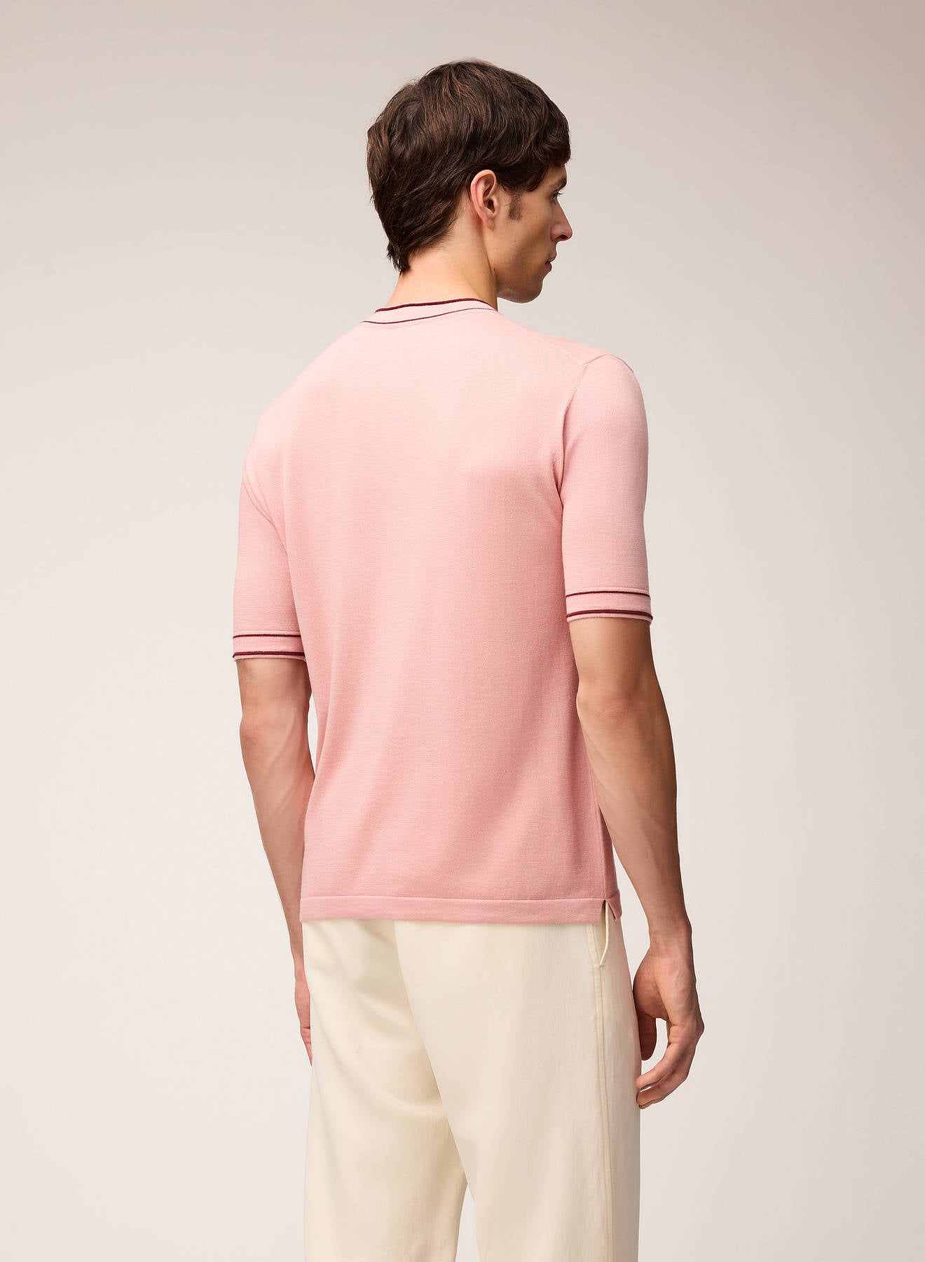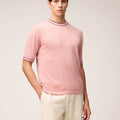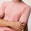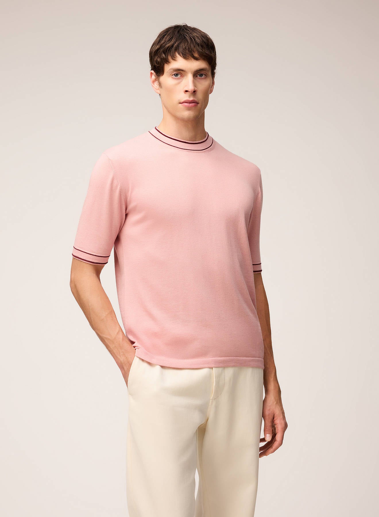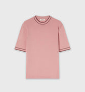 JERSEY STITCH KNIT T-SHIRT WITH CONTRASTING STRIPE DETAIL PINK ROSE