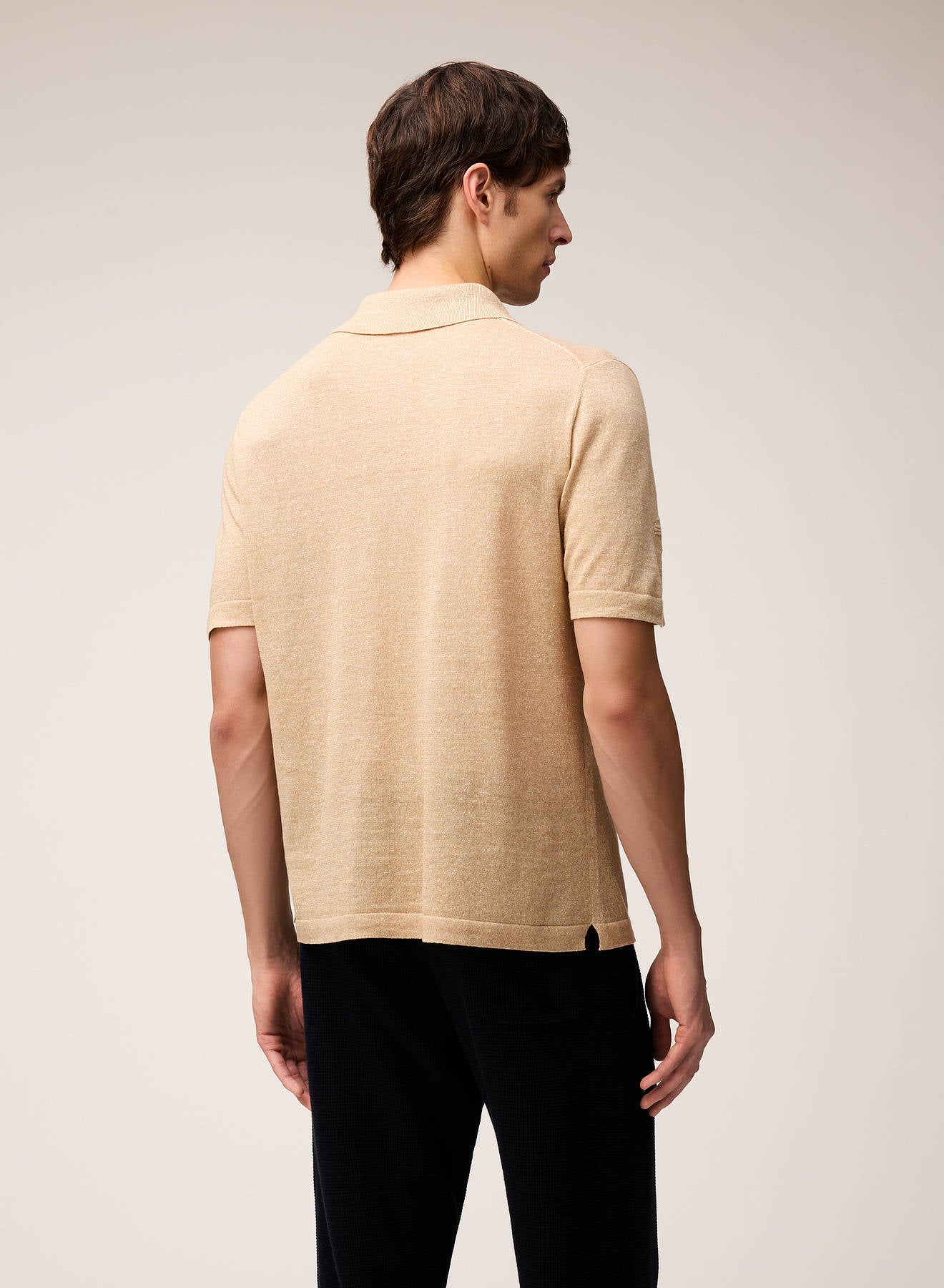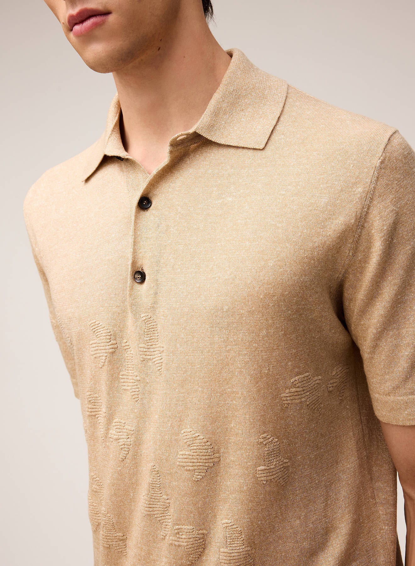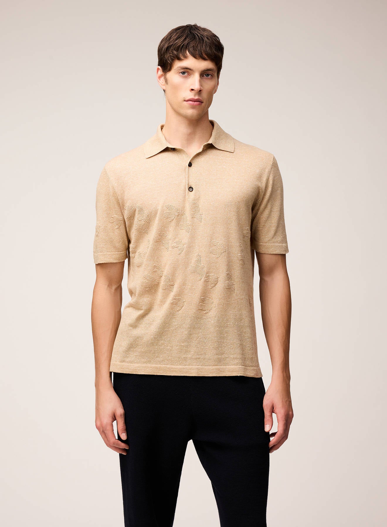 KNIT POLO WITH JACQUARD DETAIL SAND