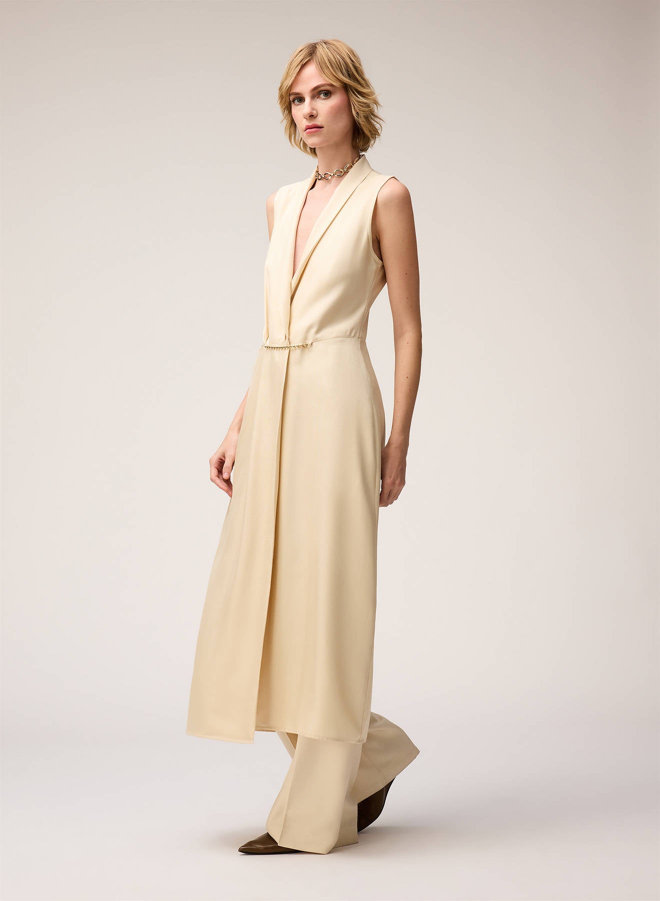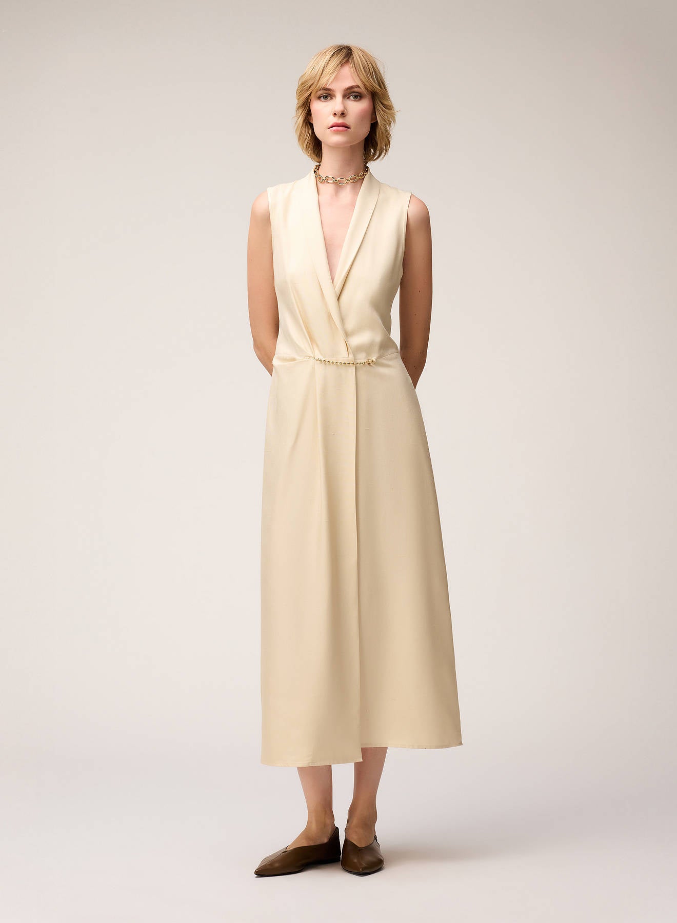 SILK WRAP DRESS WITH METAL CLOSURE BUTTER