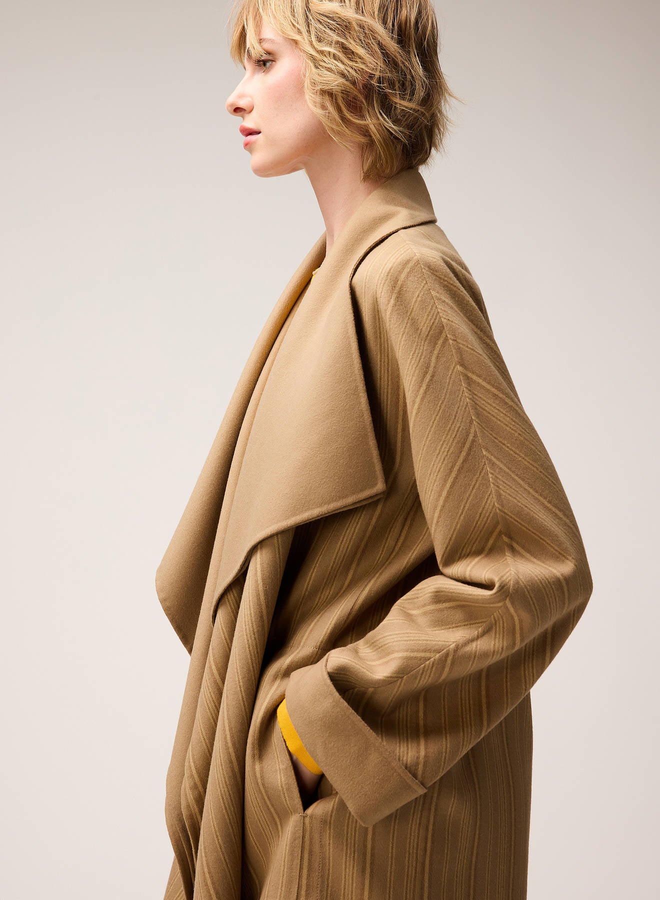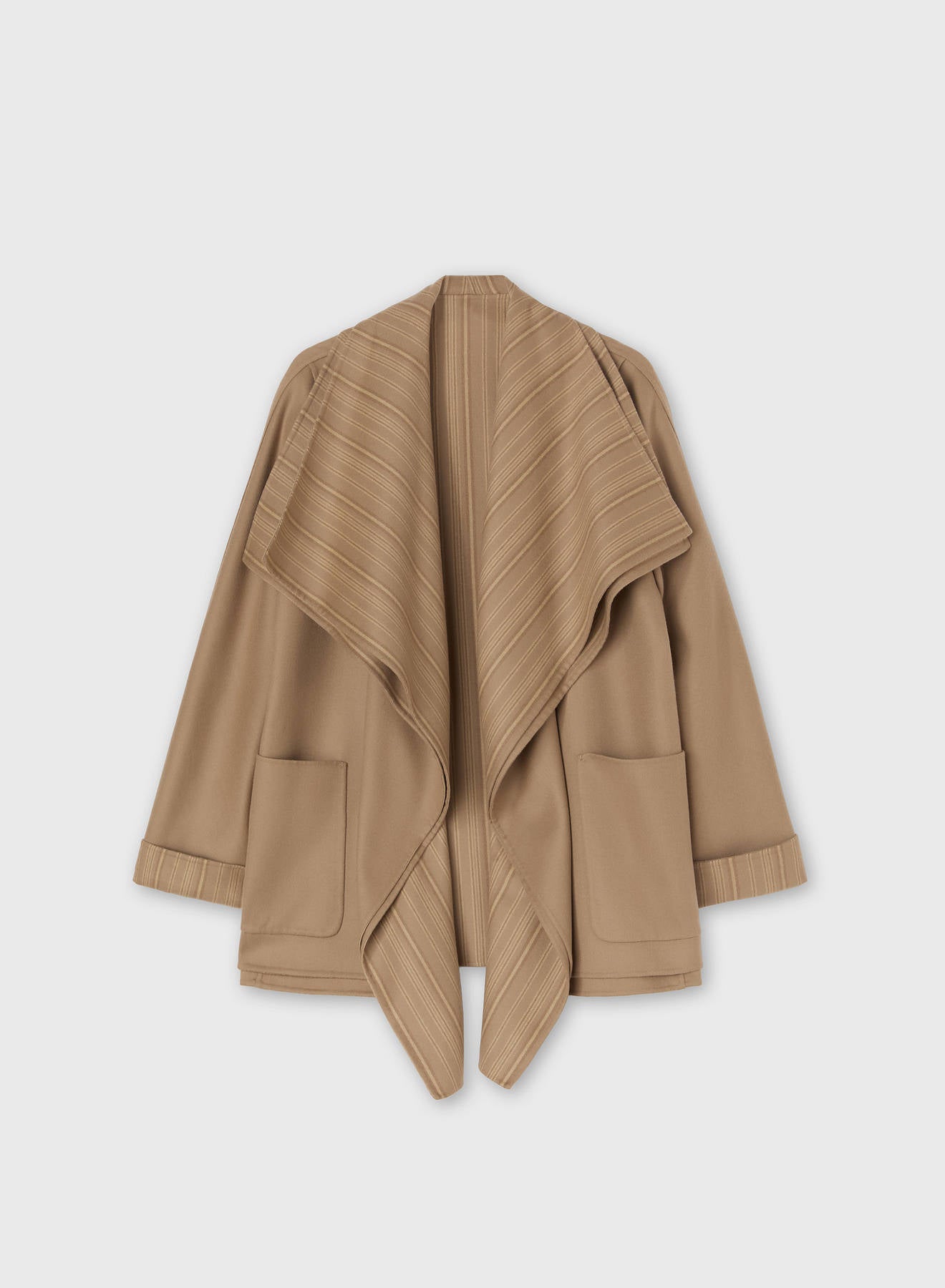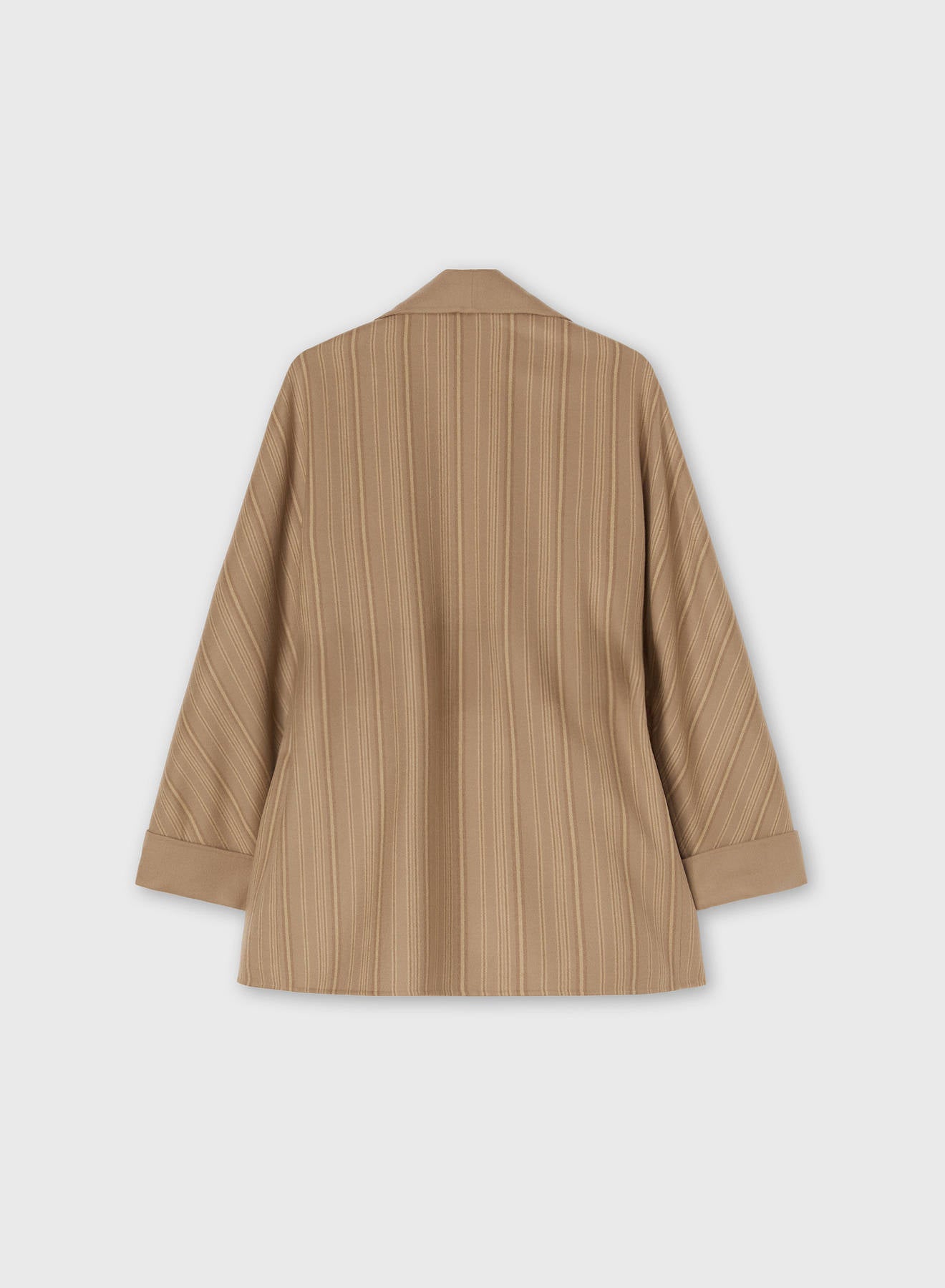 STRIPED DOUBLE WOOL SHAWL COLLAR JACKET SAND, DARK TAUPE, YELLOW
