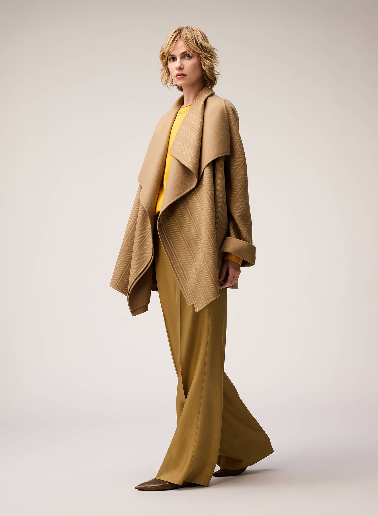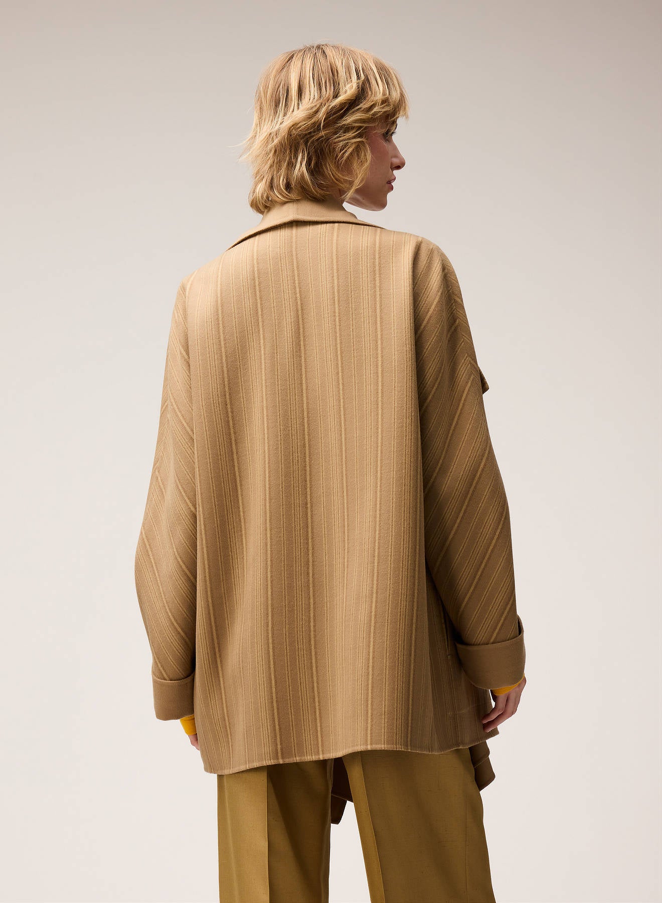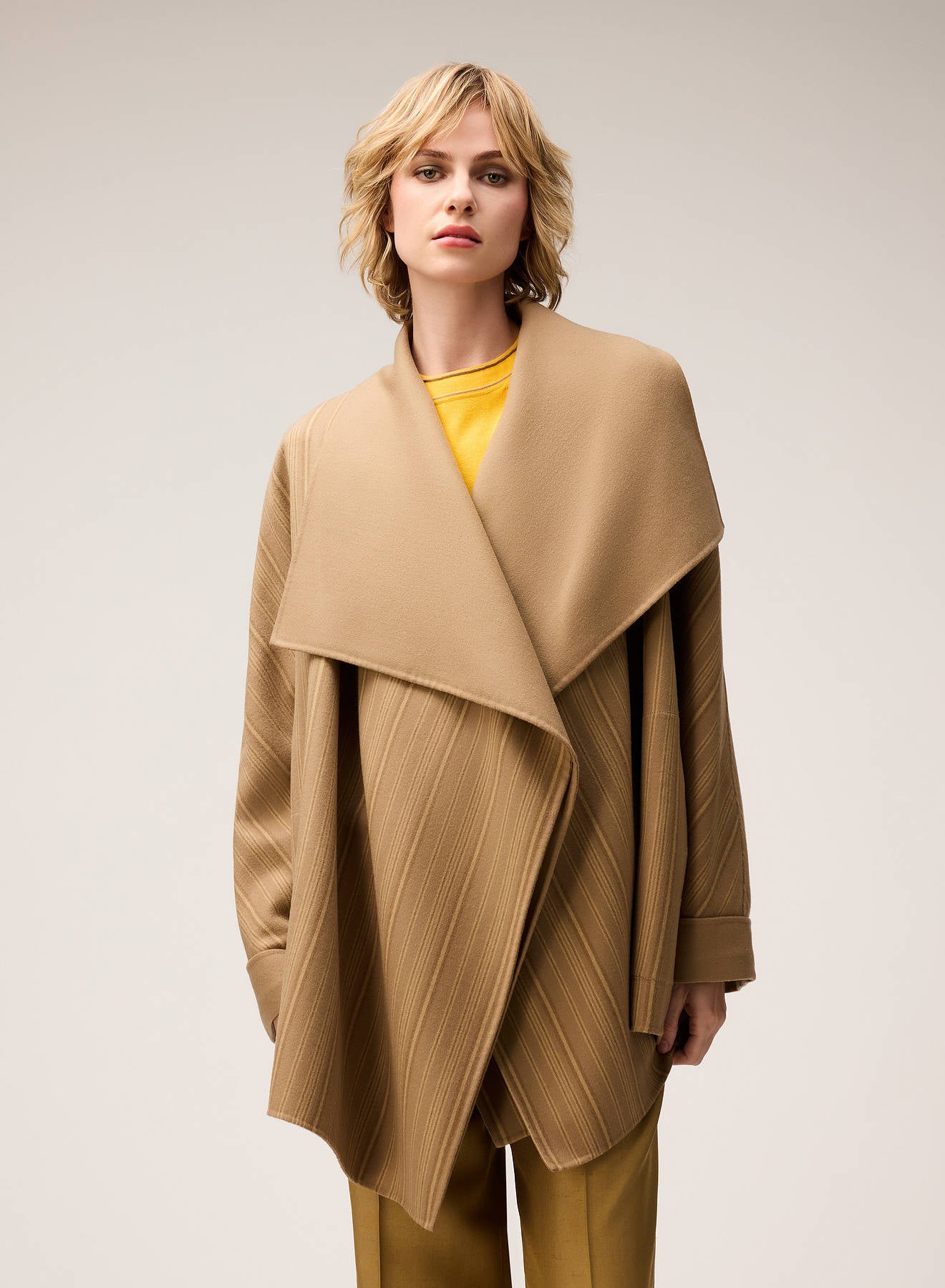 STRIPED DOUBLE WOOL SHAWL COLLAR JACKET SAND, DARK TAUPE, YELLOW