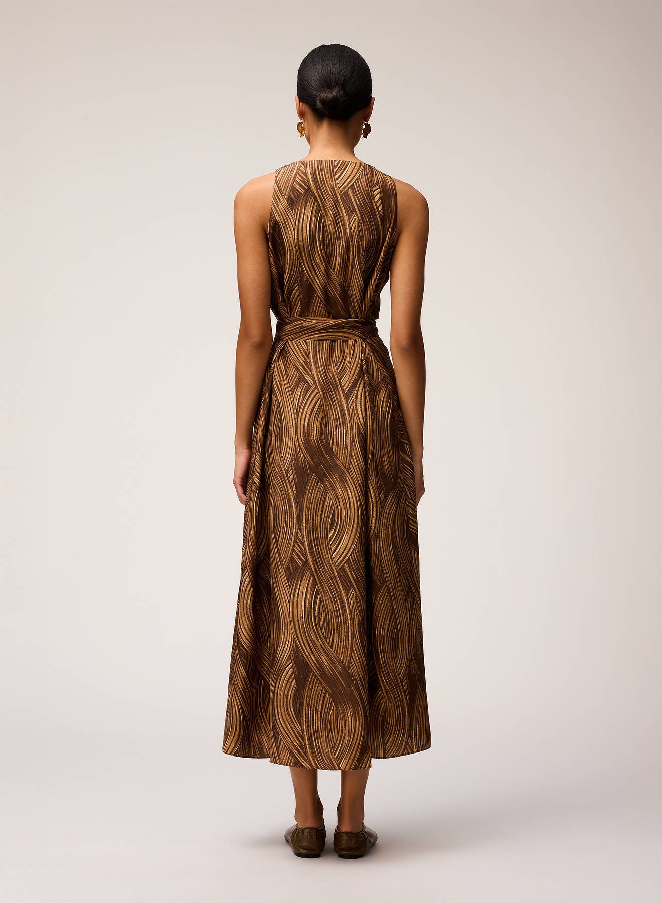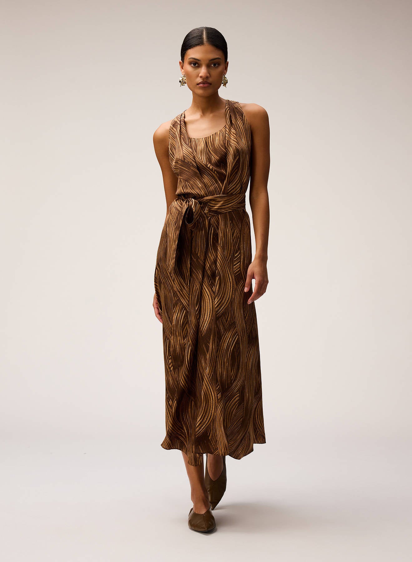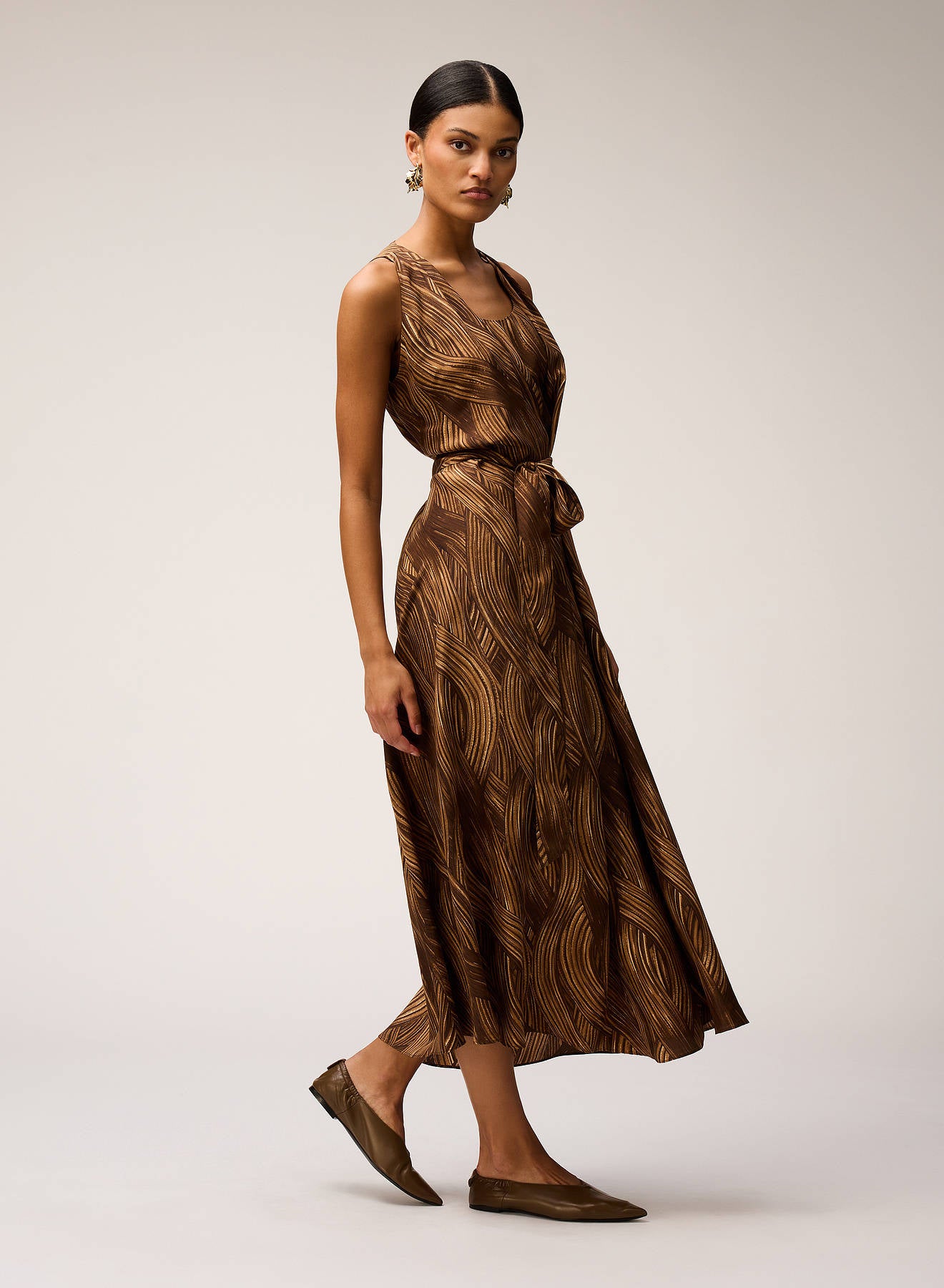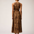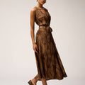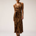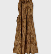 PRINTED SILK MIDI DRESS CAMEL