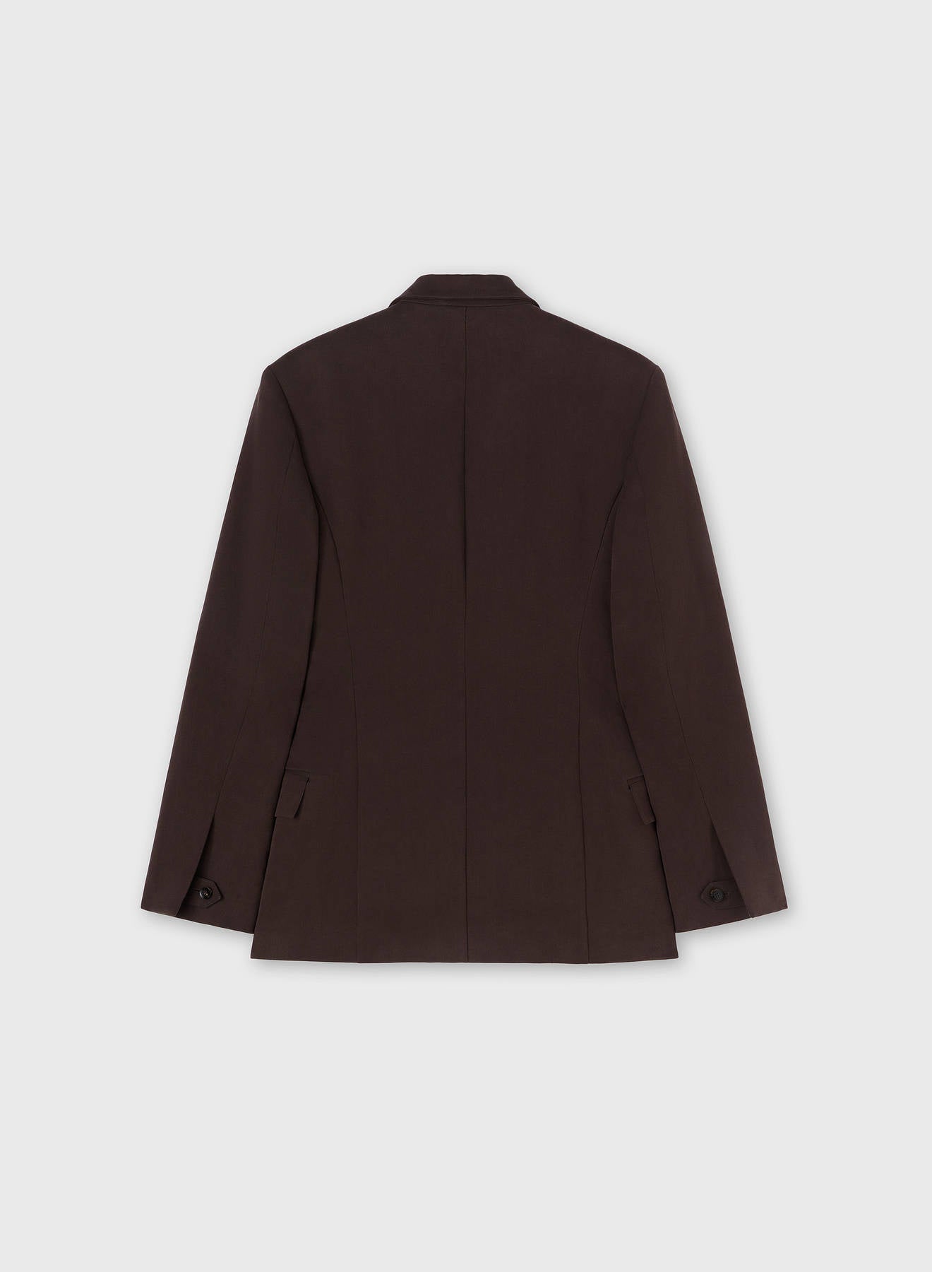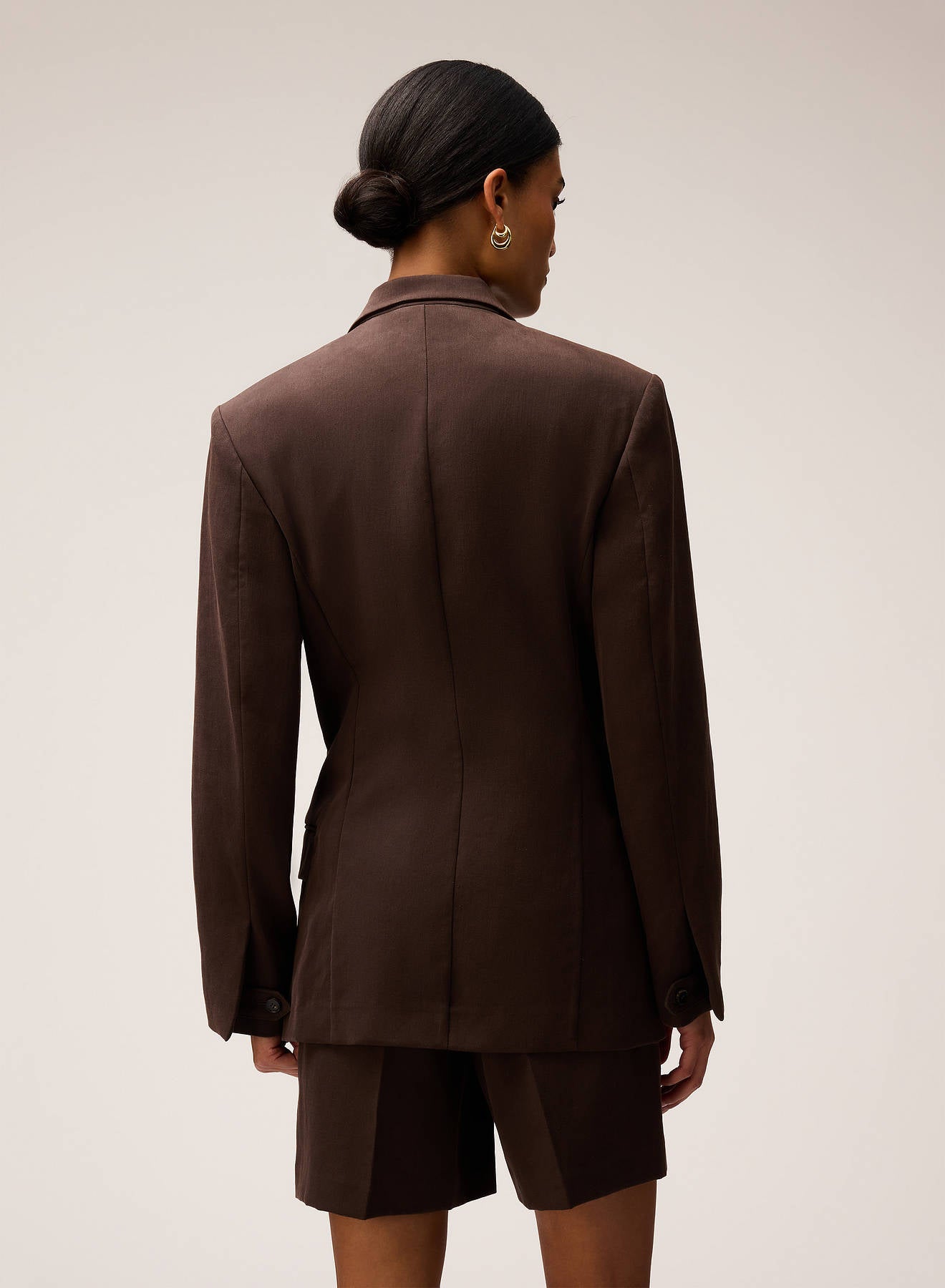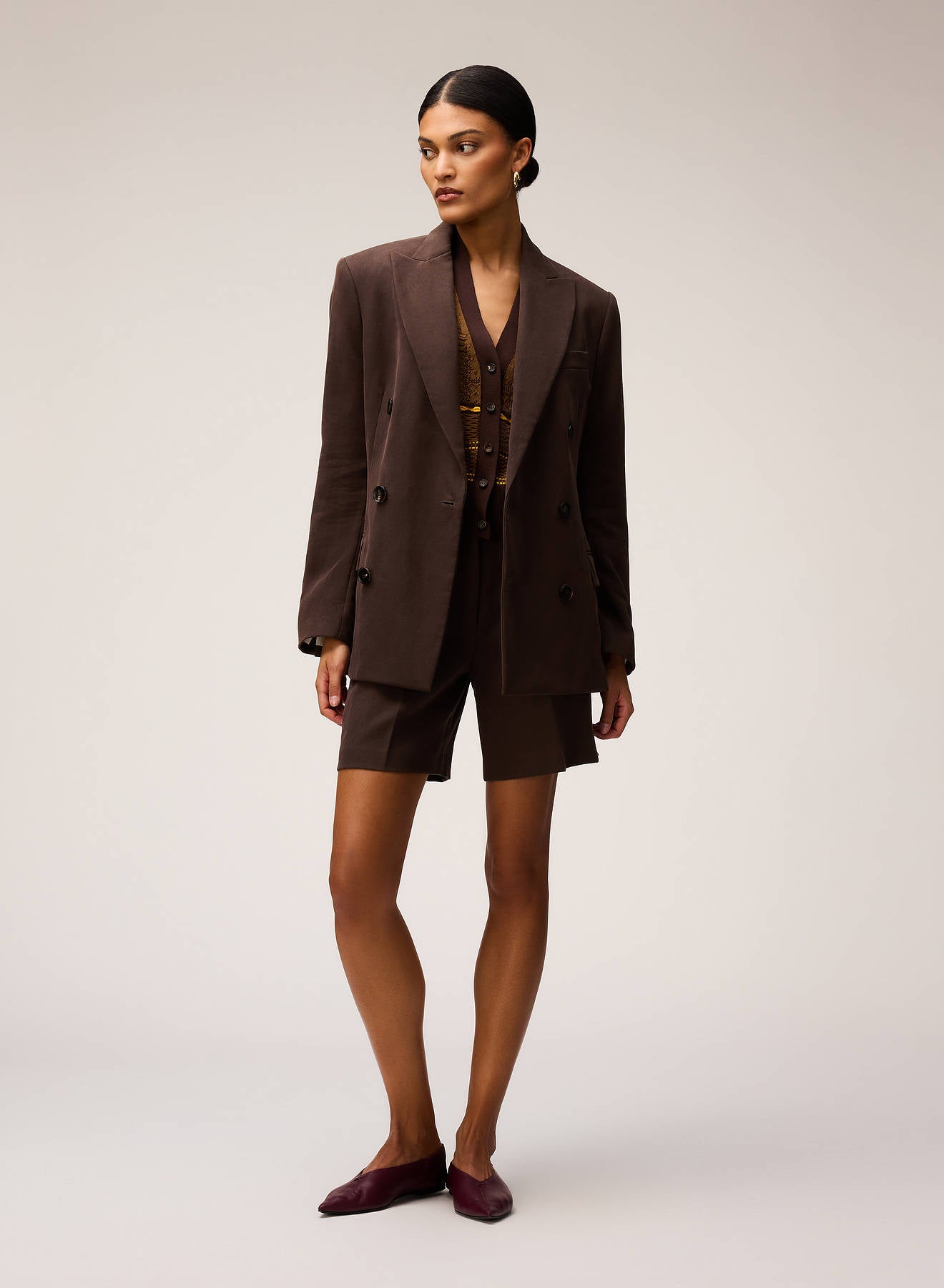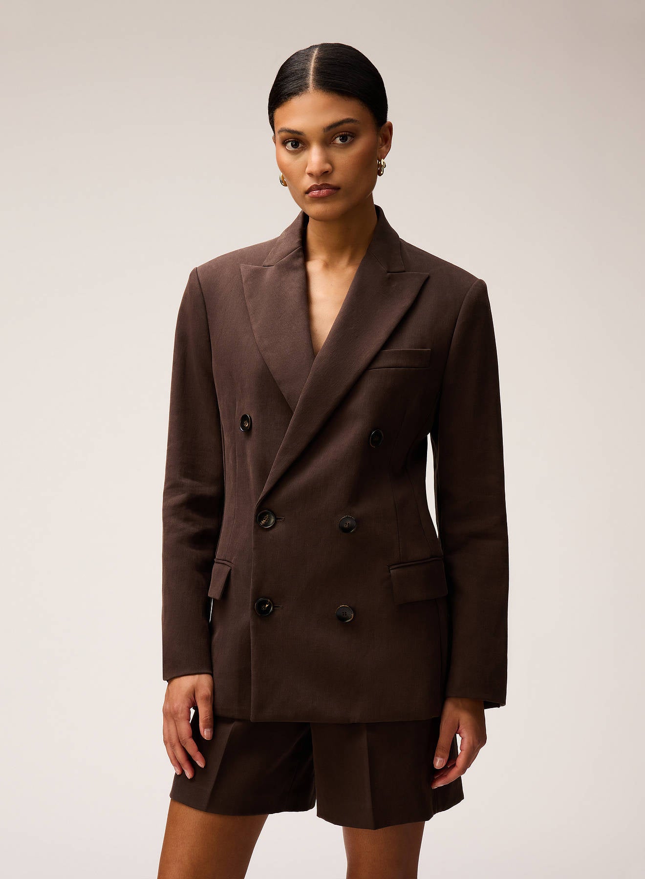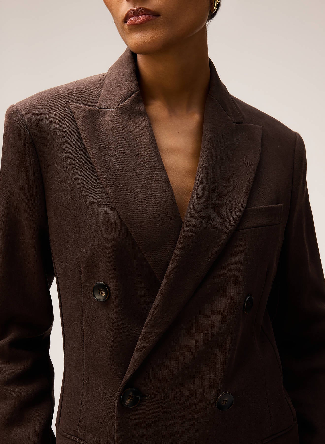 PEACH TOUCH LINEN DOUBLE BREASTED BLAZER CHOCOLATE