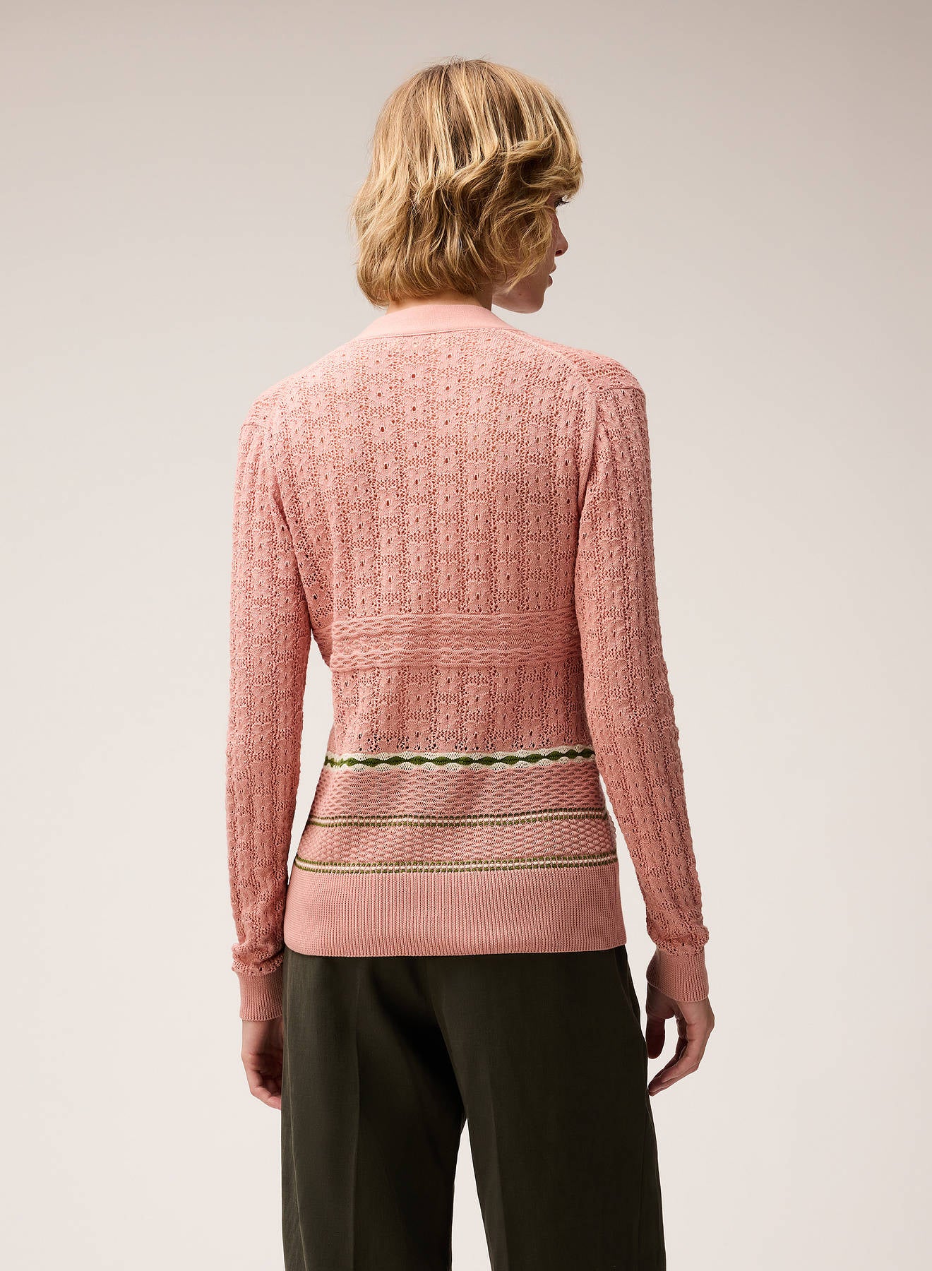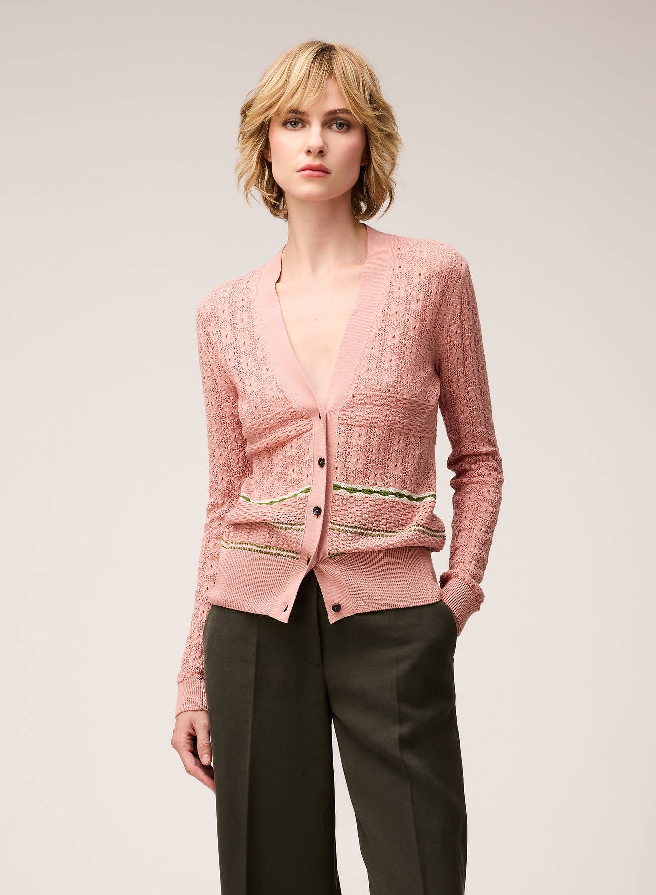 MIX STITCH KNIT CARDIGAN PINK, BUTTER AND GREEN