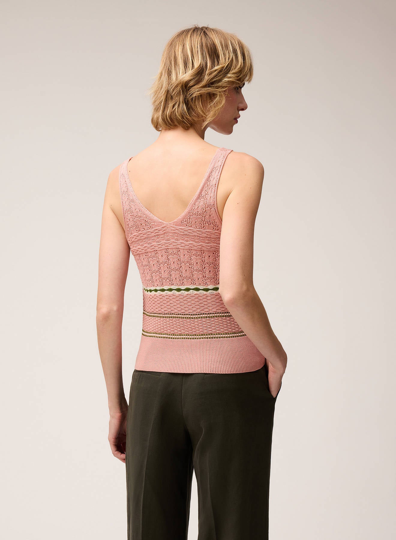 MIX STITCH KNIT TOP PINK ROSE, BUTTER, GREEN