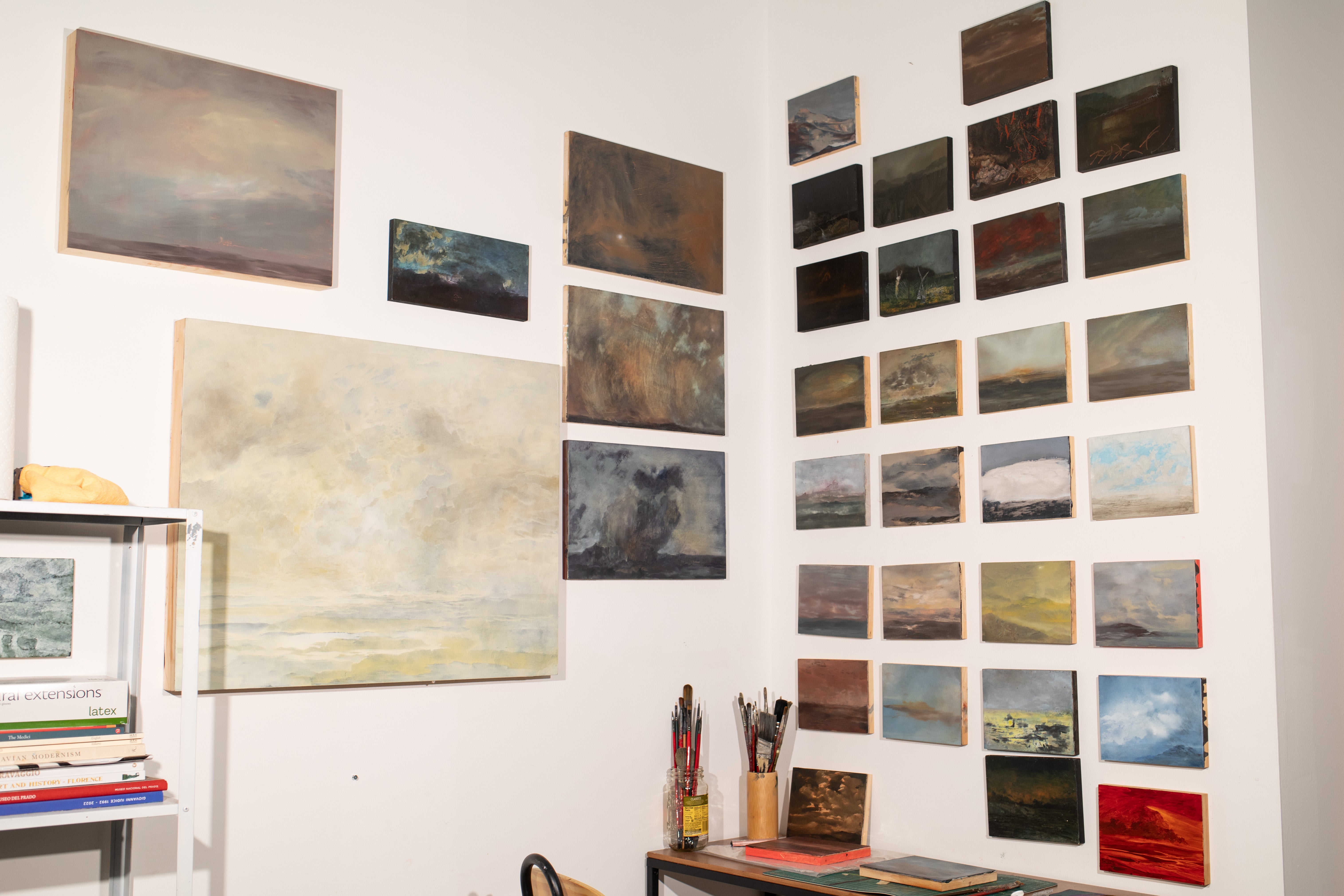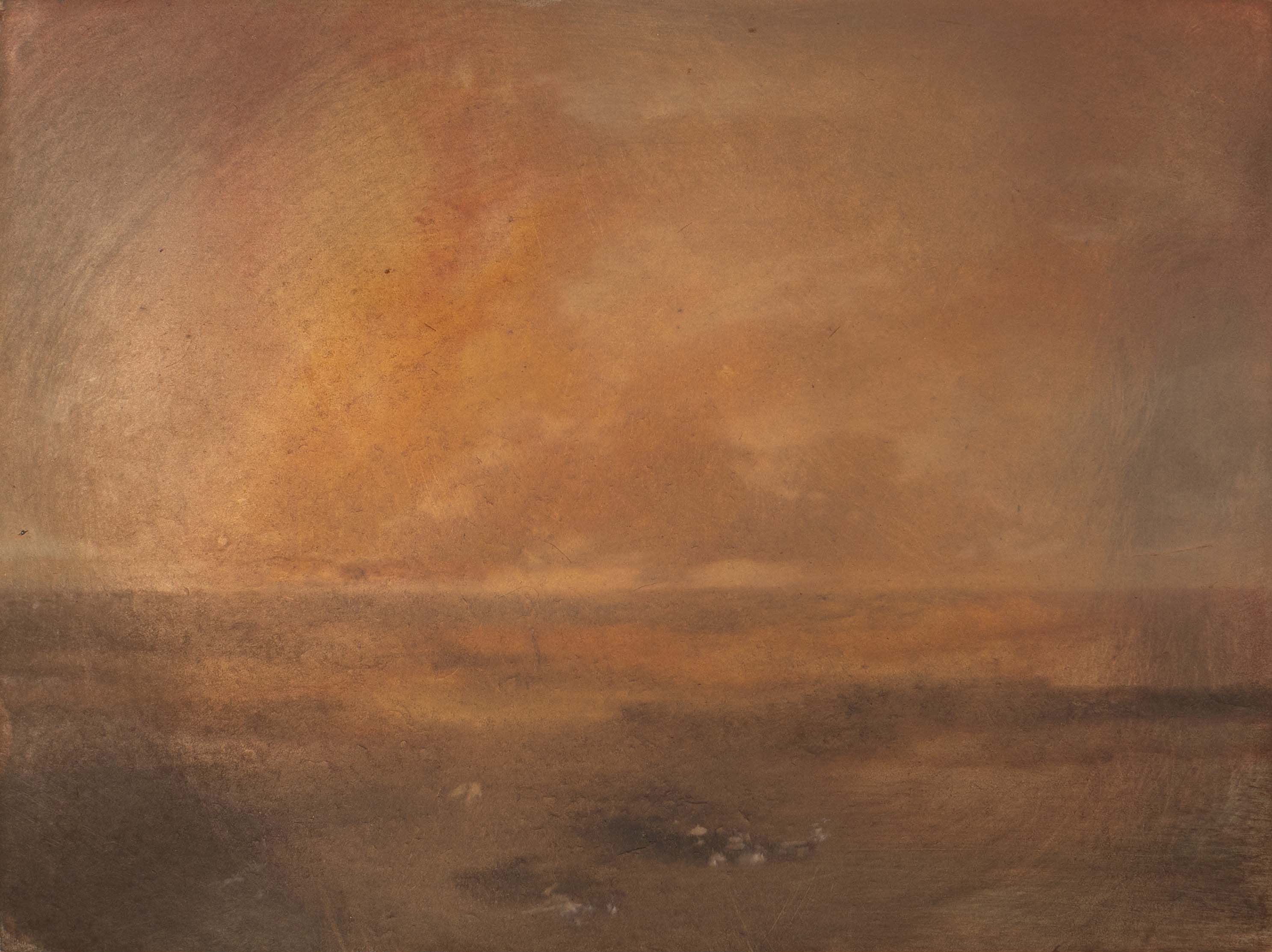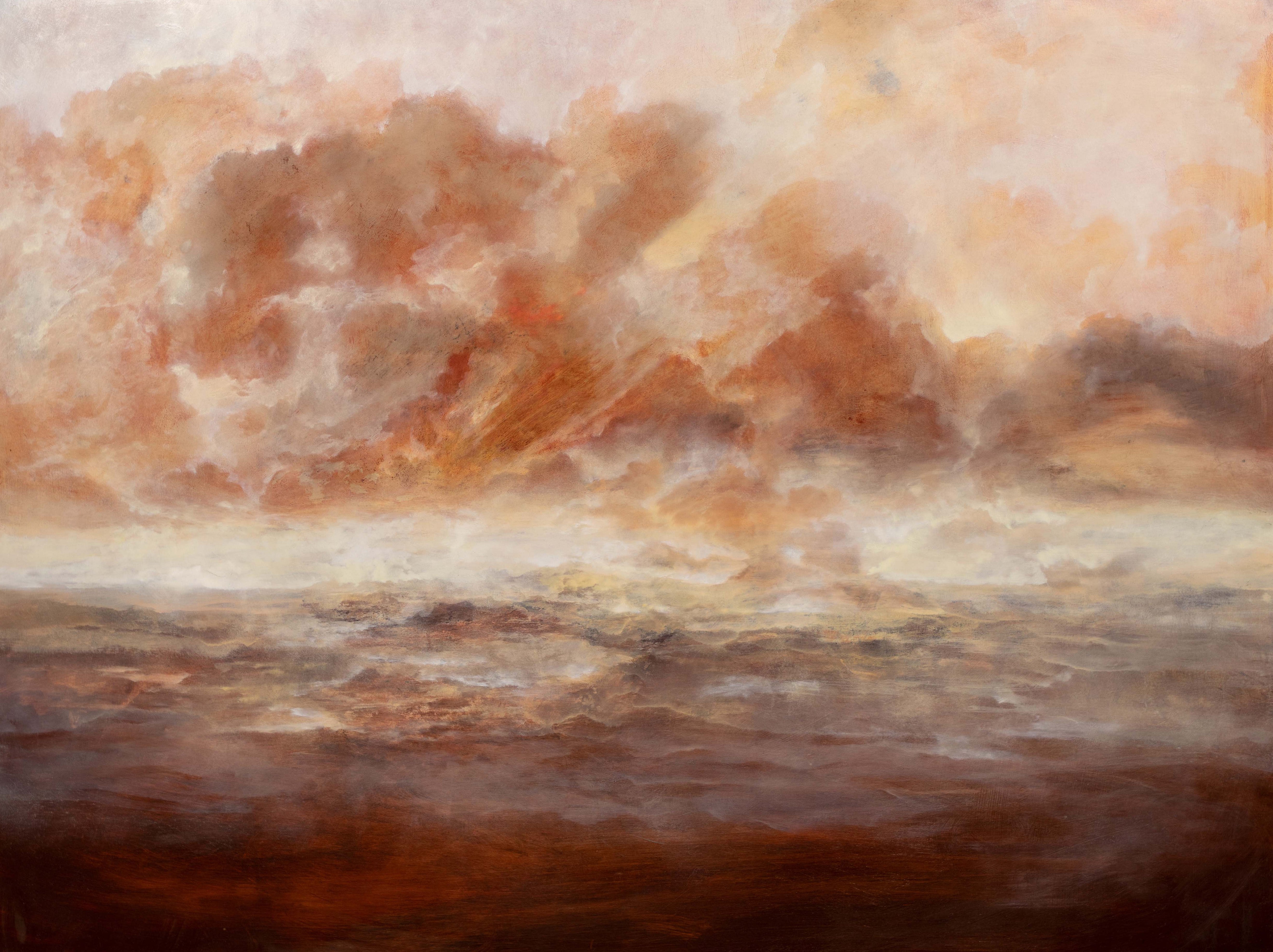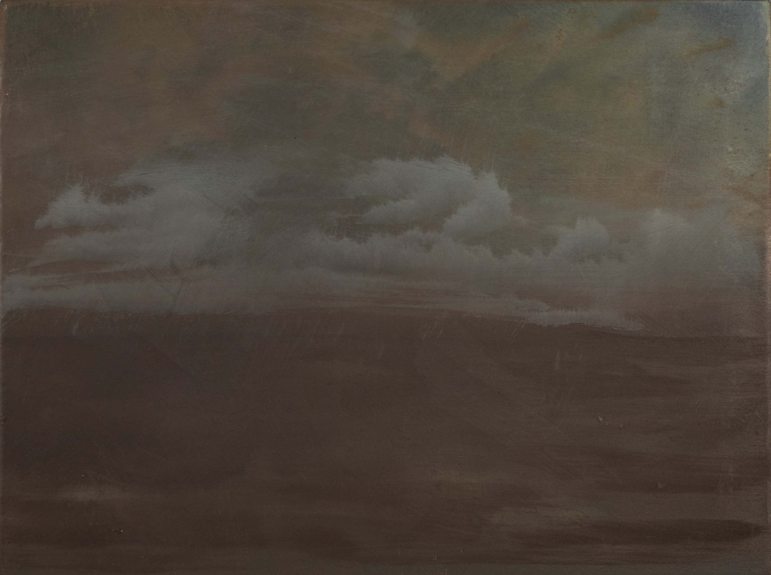 Mastering the sanding and blurring painting techniques, Portillo smooths out the texture of thick layers of oil paint and creates disorienting blocks of color through hand motion that suggest clouds, the sky and the land, to explore the themes of “limited information” and “diluted memories,” leveraging light to reveal the essence of her creative process.