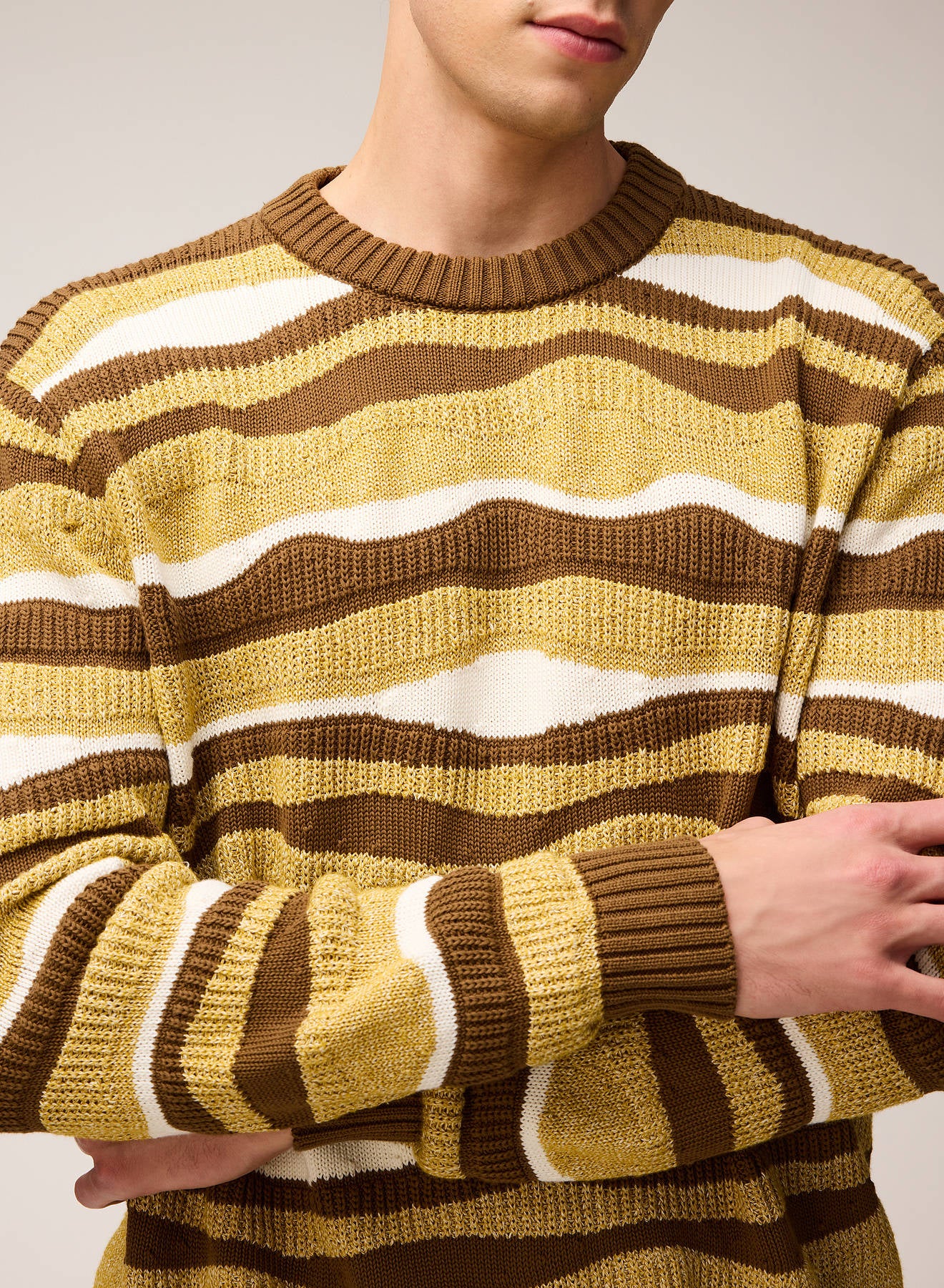 JACQUARD KNIT CREWNECK DARK TAUPE